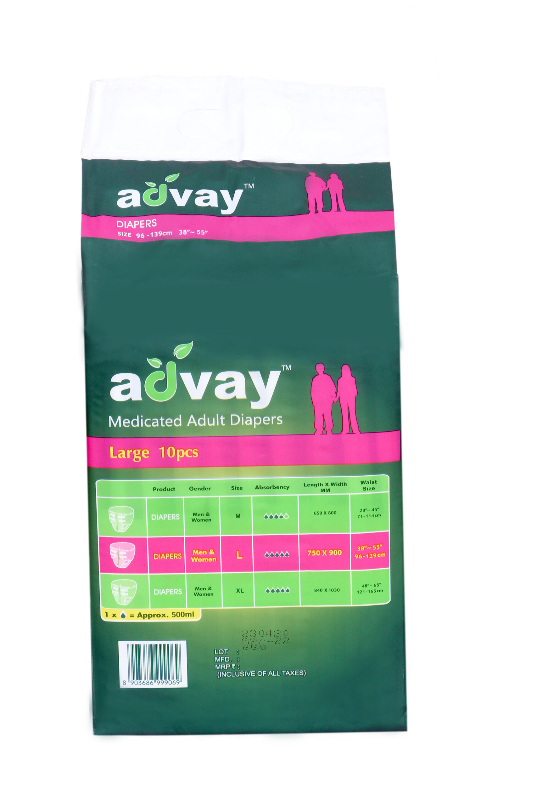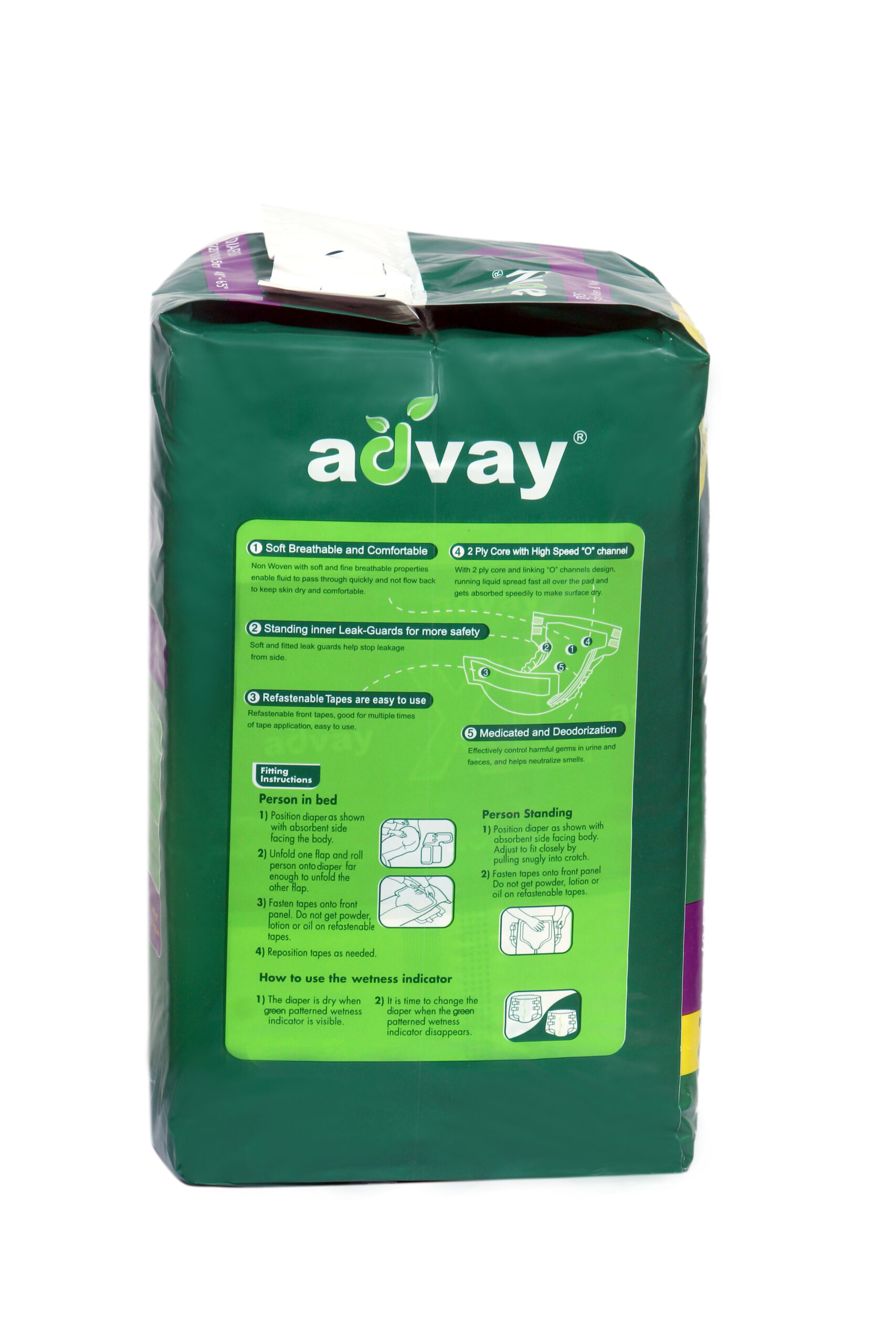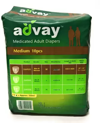 Advay Adult Diapers are superior in is class with maximum absorbency. Advay Adult Diapers is the perfect solution to the problem of incontinence – the inability to exercise control over the bladder & the bowel. Ideal for patients suffering from Prostate disorder, Piles, Incontinence; Diabetics; Urology patients, Bedridden & Disabled patients.